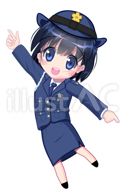 Free illustrations and vector art: Policewoman mini character smiling pointing